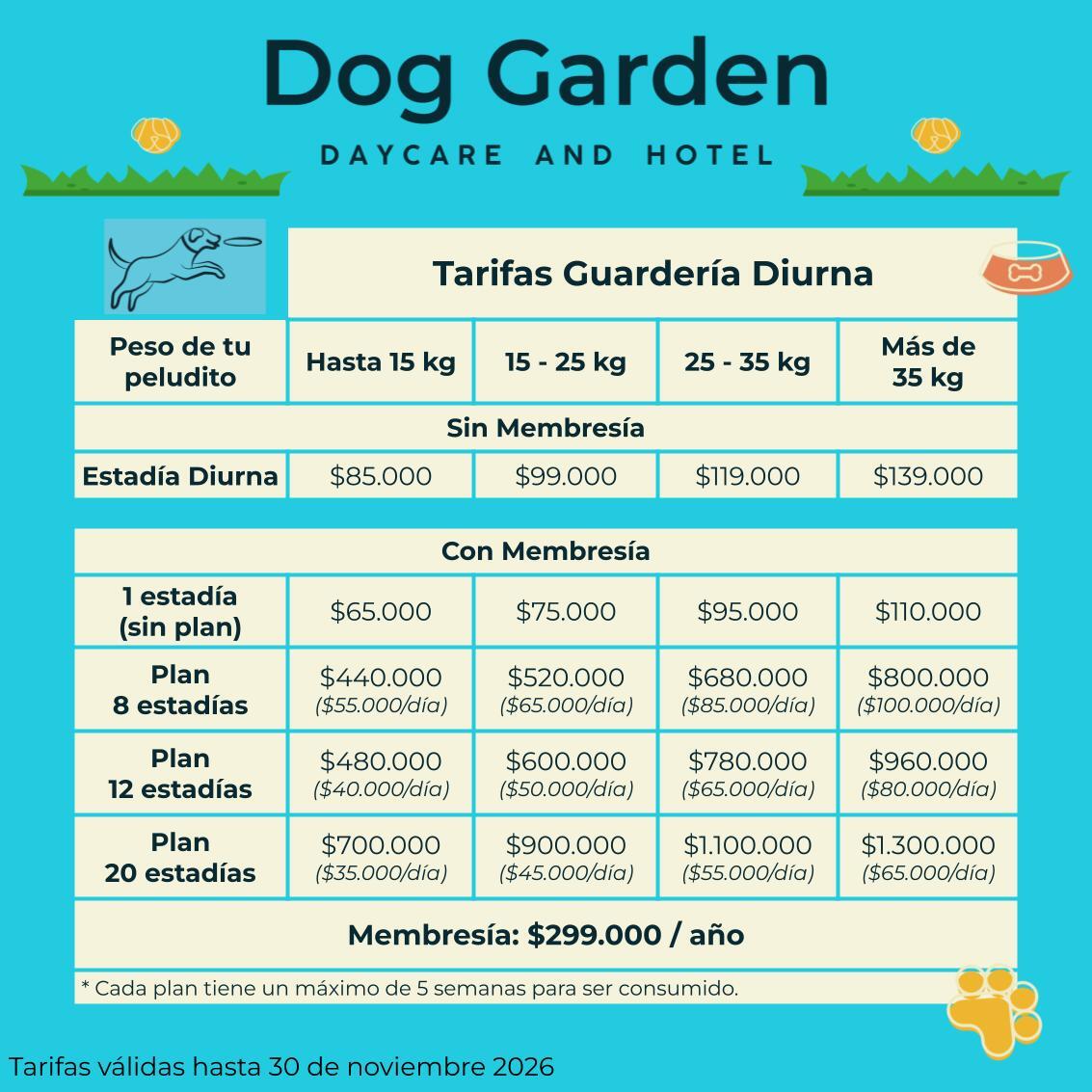 Todos los planes incluyen estadía tipo Dog Office (desde las 6am hasta las 8pm).